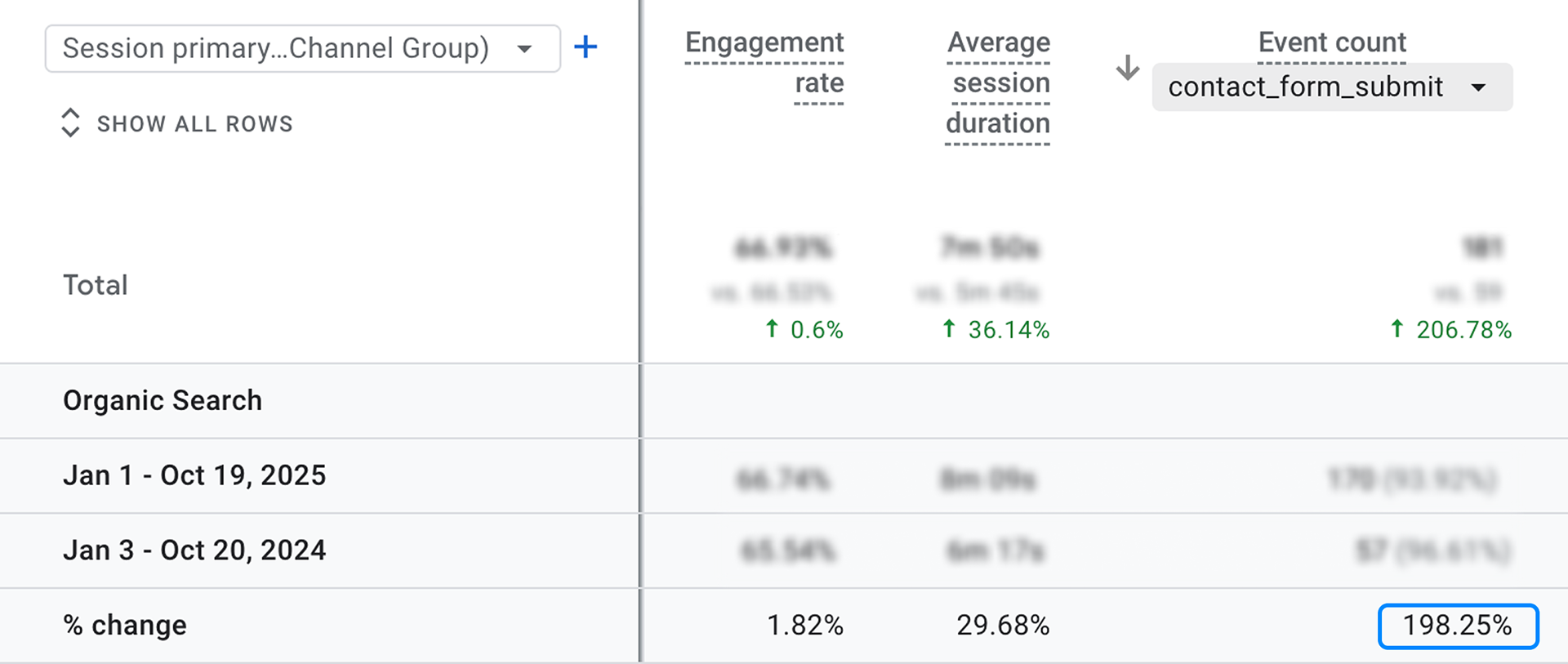 Client 4: Organic acquisition metrics improved across the board YoY, driving higher-quality traffic and significant lifts in main conversion rates.